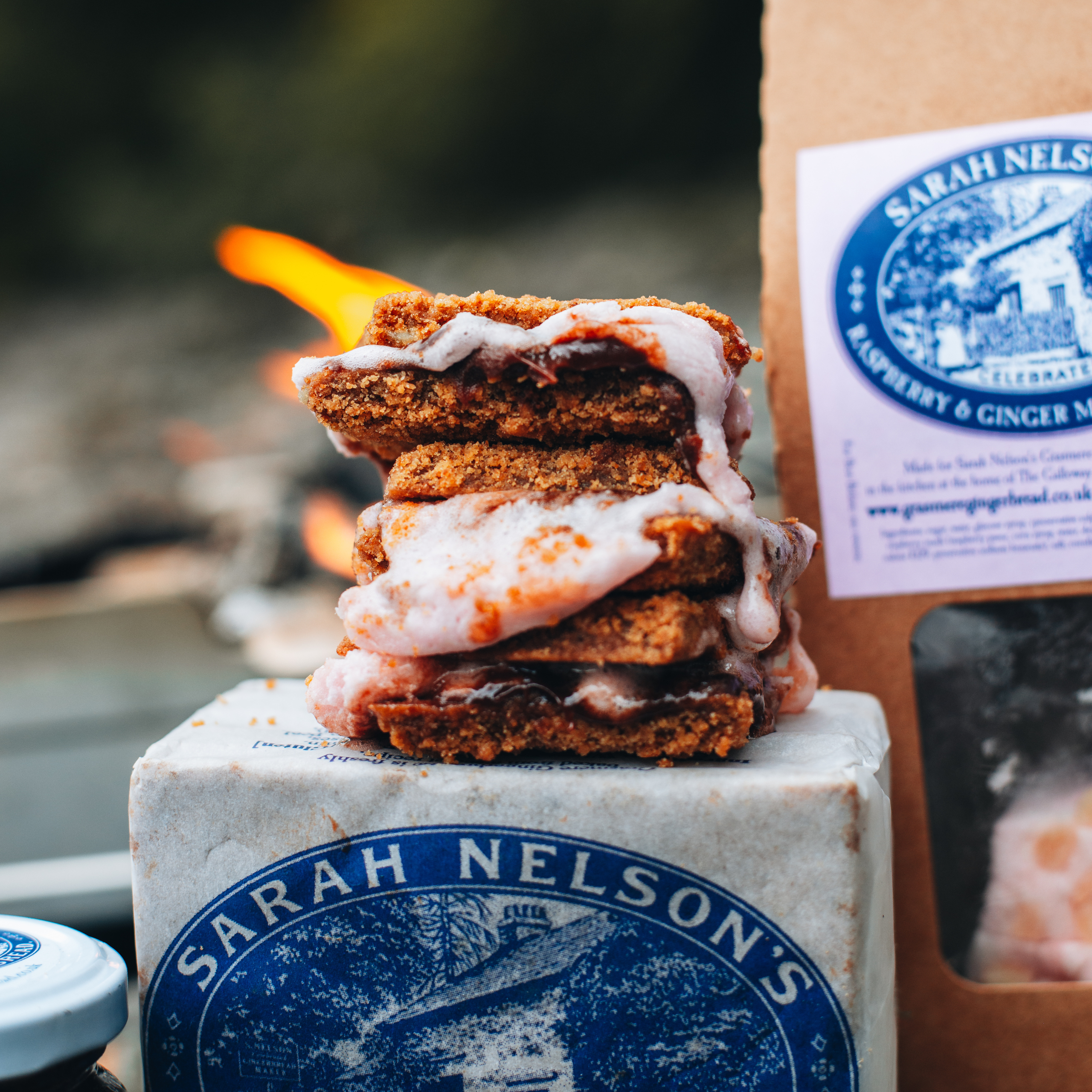 Treat yourself to delicious DIY s'mores combining a mouth-watering twelve piece packet of Grasmere Gingerbread®, Sarah Nelson's Sumptuous Chocolate & Stem Ginger Sauce, Sarah Nelson's Spectacular Ginger & Caramel Spread and Sarah Nelson's Raspberry and Ginger Marshmallows at a temptingly low special price.