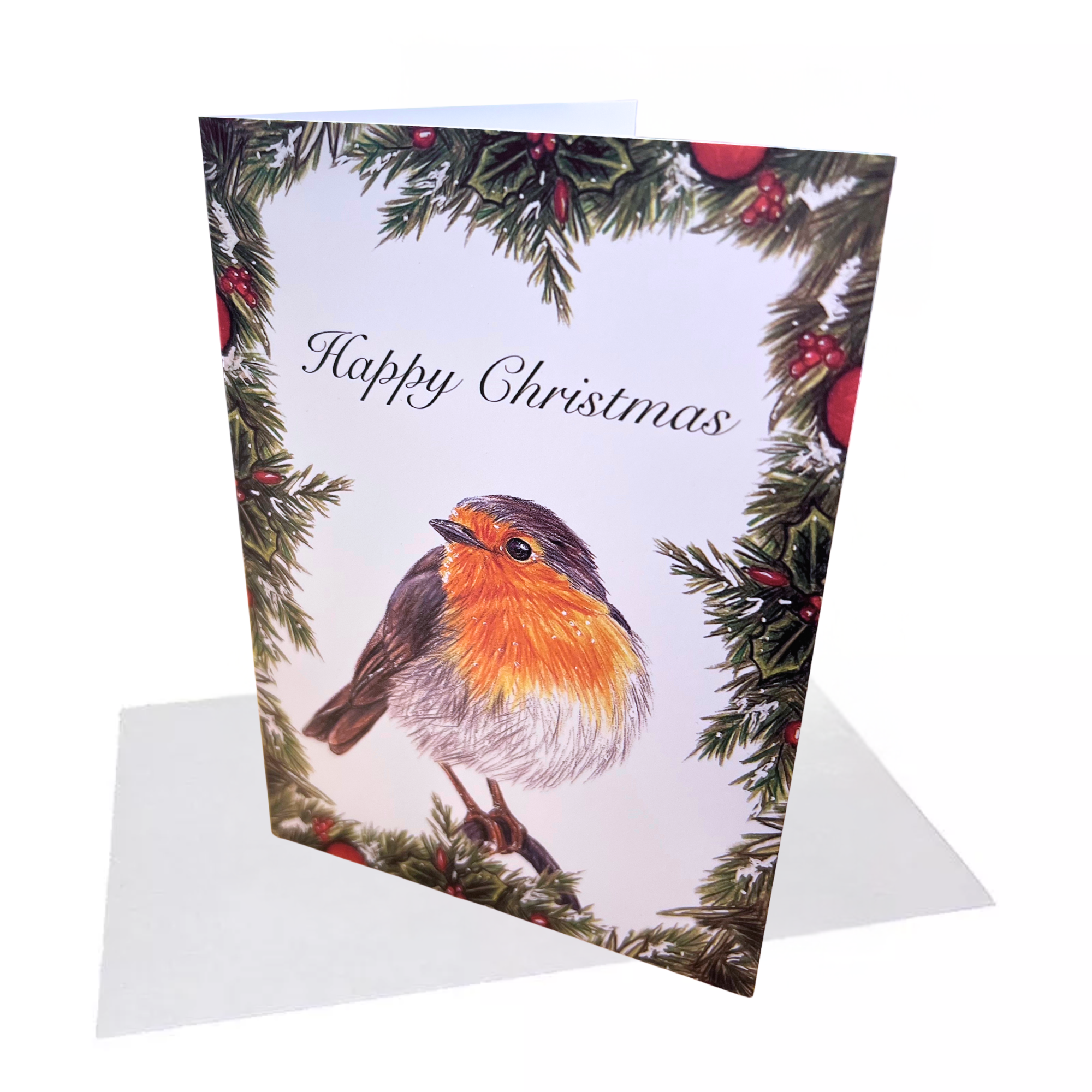 Show someone how much you care with this illustrated curious Robin Christmas greetings card.
